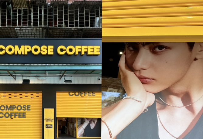 近日BTS回歸轟動K-POP圈,韓國知名連鎖咖啡品牌 COMPOSS COFFEE近期以BTS成員V金泰亨為代言人引發不少關注,在台灣則由迷克夏經營團隊引進,落腳於遼寧街巷弄,鄰近台北捷運南京復興站1號出口,開幕日期為3月30日。