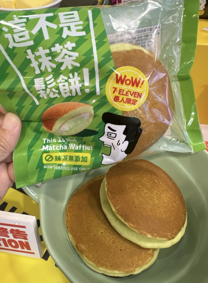 除了鹹食外,甜點部分帶來味蕾衝擊體驗的「這不是抹茶鬆餅」這款綠色的甜點不是抹茶口味!香甜鬆餅皮搭配芥末奶霜,鹹甜微嗆辣。