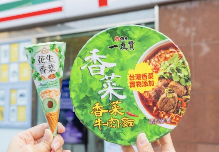 7-ELEVEN也不放過各種愚人節必備的獵奇商品與口味,推出香菜控必吃「Ohlala香菜風味辣醬雞肉義大利麵」、「花生香菜甜筒冰淇淋」、「一度贊香菜牛肉麵」。